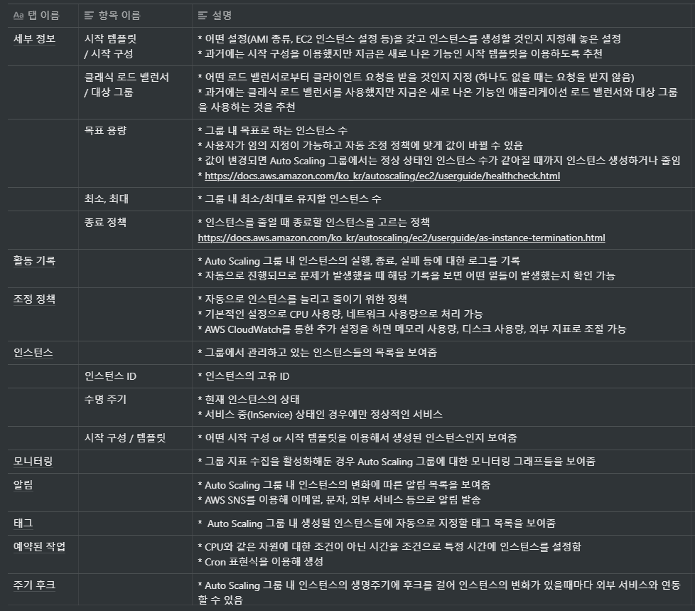 ㅁ Auto Scaling Group 각 항목에 대한 설명