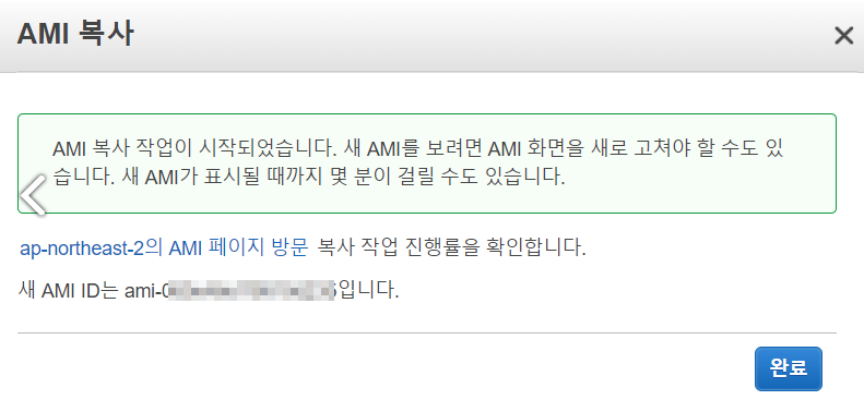 - 자세한 내용은 AMI 복사 참고 합니다.
